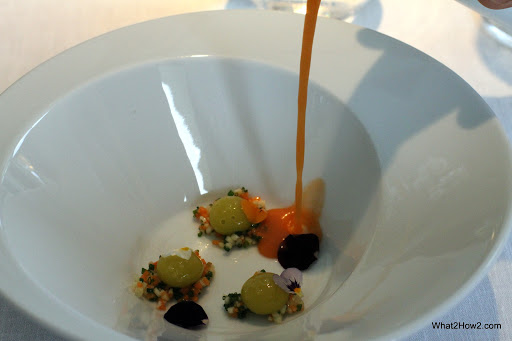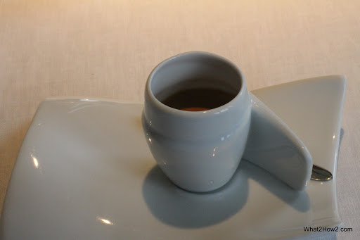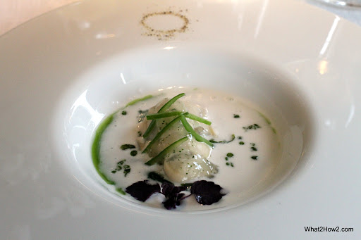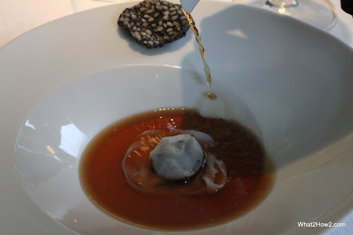 | 2001 Squid soup, Creamy Squid, ink ravioli served with squid crouton |
