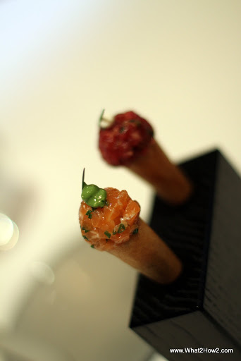| Amuse 1 – Beef tatar for A & Salmon for I |