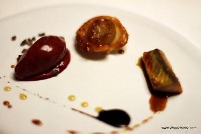 | Mackerel, onion and Beetroot sorbet as an inbetween |