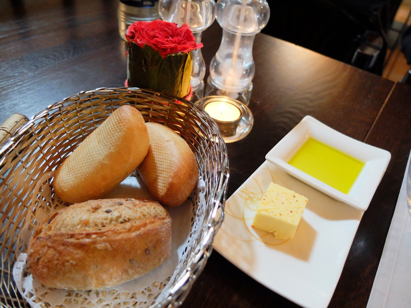 | Bread butter and good olive oil |